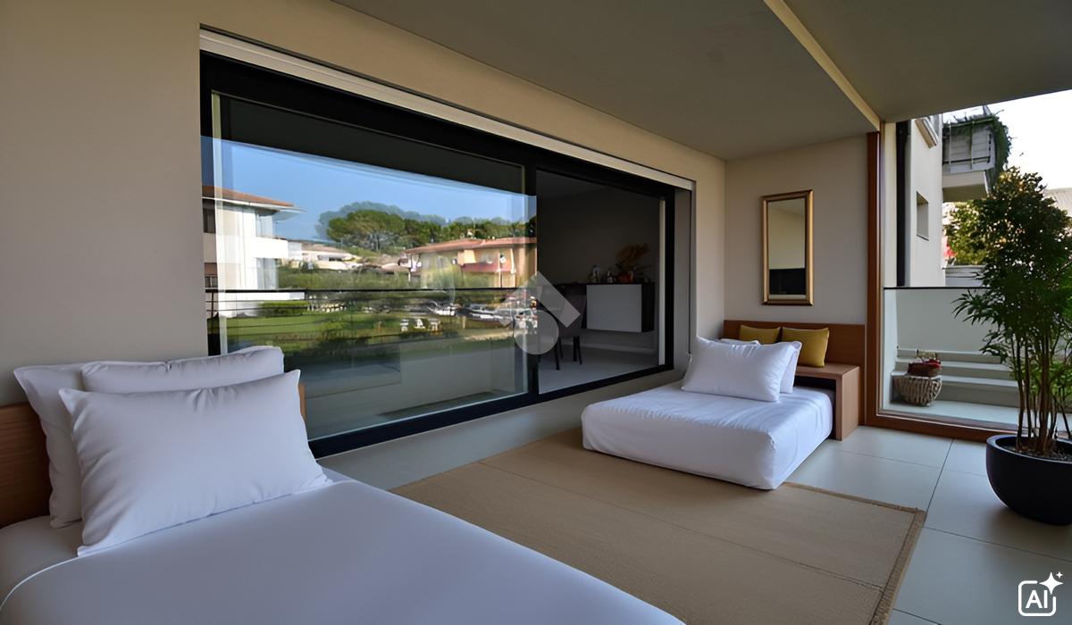 Dal soggiorno, tramite un pratico disimpegno, si accede alla zona notte, composta da una camera matrimoniale padronale con bagno privato con doccia e accesso a un balcone, una seconda camera doppia spaziosa e un secondo bagno finestrato con doccia, anch’esso con accesso a un ulteriore balcone.